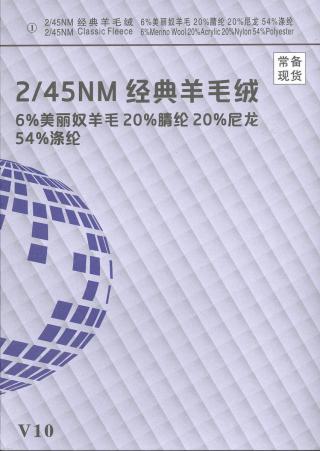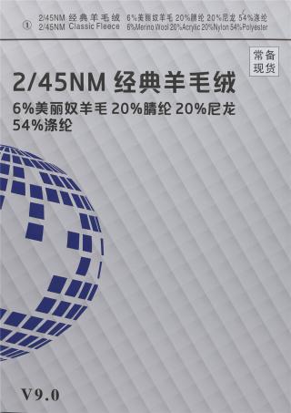 成分:40%改性涤纶 20%抗起球晴纶 20%中空尼龙 20%美丽奴羊毛